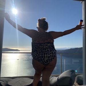 * Plus size* Animal Leopard print 2 piece bathing suit. 4xl (great stretch). I love this 2 piece! very comfortable and great stretch. * Preloved* Great condition!