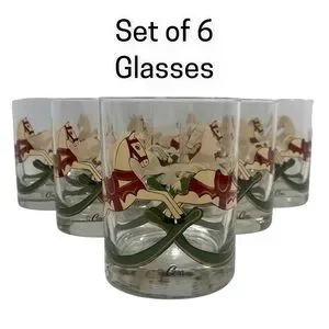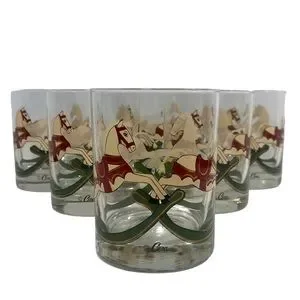 CERA Vintage Carousel Rocking Horse Set of 6 Old Fashioned Rocks Glasses Barware