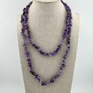 Tumbled Amethyst Necklace Single Strand Sterling Silver Beads 38" L Purple VTG