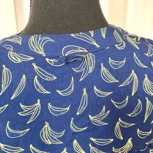 works just about anywhere. Blue with cute yellow bananas Chest pockets.