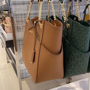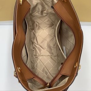 MICHAEL KORS LARGE X CHAIN LOGO SHOULDER BAG BROWN