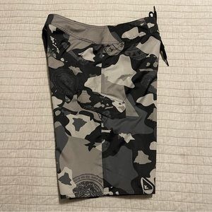 QUIKSILVER rare hawaii state seal premium surf camo emblem BOARD SHORTS 29