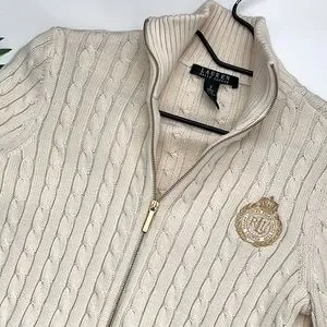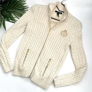 Lauren Ralph Lauren cream women’s zip cardigan size small
