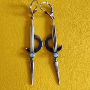 Original art deco sterling earrings with opals. Purchased 22years ago on Austria eBay site. They are unmarked, I feel confident that they are sterling silver. Almost 3 inches long.