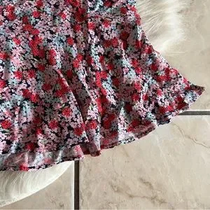 Pink and red floral A-line SO mini skirts with ruffled hem | NWT
