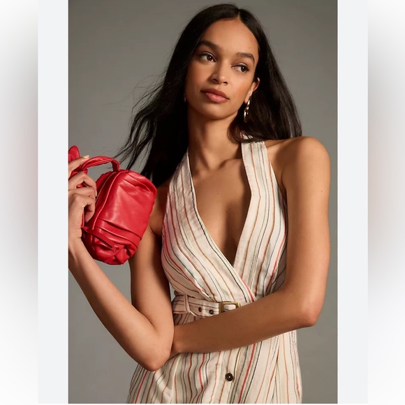 Anthropologie Maeve Belted V-Neck Button-Front Dress
