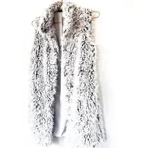 love token white faux fur button up vest with pockets