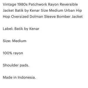 Vintage Y2k Patchwork Rayon Reversible Jacket Batik by Kenar