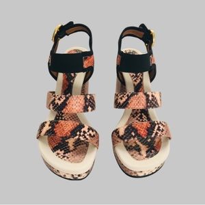 See By Chloe Snakeskin Effect Block Heel Platform Sandal Antique Rose Si…