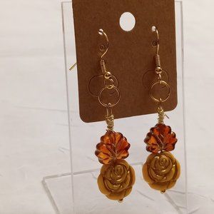 Steel handmade leaf and rose beaded dangle earrings #55