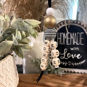 Bonus MomCar charm/Key Chain. Wooden beads with gold/black/white accent bead ♥️