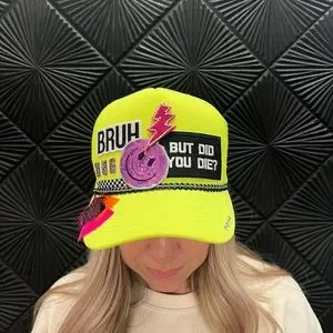 Handmade neon with fun “but did you die?” Pun. Adjustable hat strap on the back.