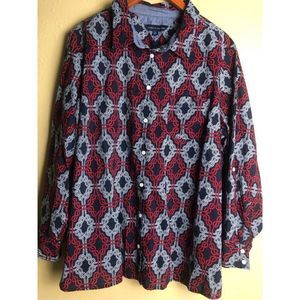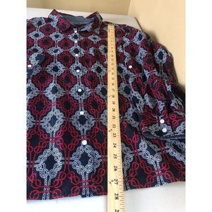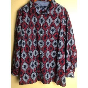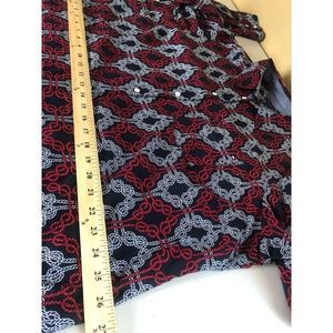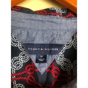 TOMMY HILFIGER Navy w/ Red & White Knotted Rope Print Tabbed Sleeve Shirt Sz 1X