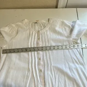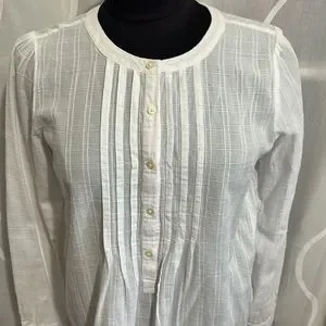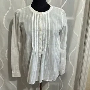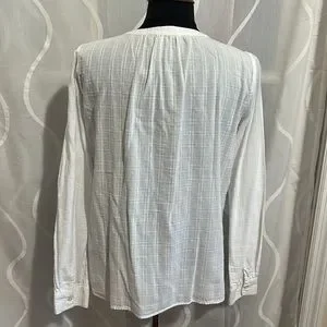 Loft, White, Rounded neck, 1/2 button down, 100% Cotton, Long Sleeve Top, Small