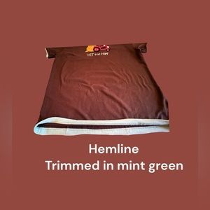 This pajama top is like chocolate-mint ice cream. The shirt has a chocolate brown background. The collar, the sleeve hems, and the hemline are all trimmed in a second cotton fabric, in mint green.