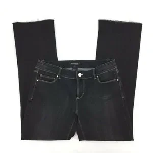 White House Black Market WHBM Women's Blanc Boot Leg Jeans Size 4 Black Raw Hem