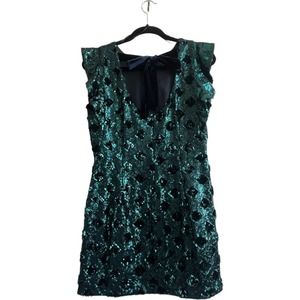 Step into a world of sparkling elegance with this dazzling sequined short dress. Designed with a classic round neck, it's a piece that captures attention with every turn. The dress is adorned with ruffled sleeves, adding a touch of whimsy and grace to your movements. The outer shell shimmers in the light, making you the star of any event. Its unique charm is further enhanced by a low cutback, tastefully accented with a navy blue tie, blending sophistication with a hint of allure. Perfect for evenings where making a memorable impression is a must. β¨ππ