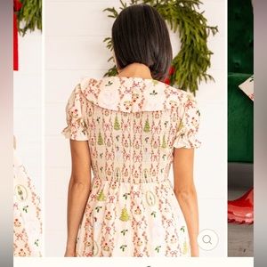 Absolutely beautiful dress. SOLD OUT ONLINE. Dress is new with tag. In perfect new condition with tags still attached. Plenty of stretch on the top thanks to the smocking. Picture of Size Chart from Website is attached. This dress has a Nutcracker inspired print, with hand-drawn bows, Christmas trees, ballet slippers and nutcrackers ballet inspired details! Ruffle detailing, a beautiful green velvet bow and smocking add delicate touches of femininity and class. This dress is a beautiful holiday piece that is timeless and classy.
