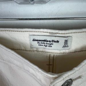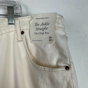 NWT Abercrombie & Fitch The Ankle Straight Ultra High Rise Cream Size 36 22 LONG
