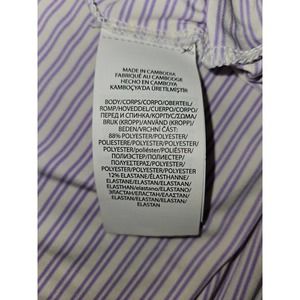Elevate your golf game with this stylish RLX Ralph Lauren Polo shirt. The white and purple striped shirt features a collared neckline with a button-down style. Made of a lightweight and breathable polyester-elastane blend, this shirt is perfect for all seasons and all outdoor activities. The shirt is machine washable and has a chest size of 46 inches and a shirt length of 30 inches. Perfect for the preppy and designer dad, the shirt also features a RLX Ralph Lauren logo.