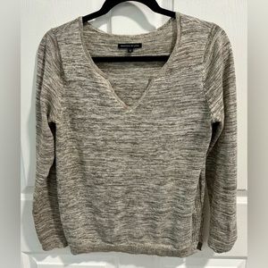 Madison & Lola Cream, Gold, Grey V-Neck Sweater. Ribbed side detailing, split hem. Gorgeous top!
