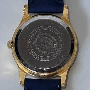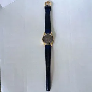 Very good condition. Has a second hand. Battery replaced 12/17/23. You may need to replace the battery once the watch is sold. Measures 7.5" long (excluding buckle clasp). Leather looks great!!