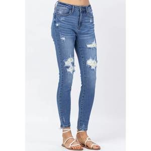 Judy Blue Lemon Patch High Waist Skinny Jeans (Style: 88233). These high waist, medium blue, skinny jeans are aching to be worn. Distressing with the lemon patches. Classic Judy Blue stretch. These jeans fit true to size. Machine wash separately in cold water. Color may vary on your screen. Distressing can vary. Patch patterns will vary. Size 3: Inseam 28.25" / Rise: 10". Size 16W: Inseam 28.5" / Rise 11.75". Material: 92% Cotton / 7% Polyester / 1% Spandex. Sizing: 1 = 26" waist / 3 = 27" waist / 5 = 28" waist / 7 = 29" waist / 9 = 30" waist / 11= 31" waist / 13 = 32.5" waist / 15 = 34" waist / 14W = 34.5" waist / 16W = 35.5" waist / 18W = 37.5" waist / 20W = 39.5" waist / 22W = 41.5" waist.