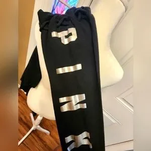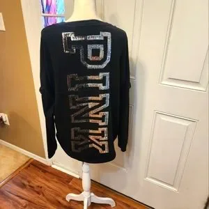 Black PINK long sleeved shirt with sequin on the black and PINK written on the sleeves in silver. Size L.