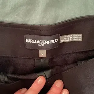 Brand new without tags, black leather sailor pants by Karl Lagerfeld. Wide leg trouser. Size 12. Zipper on side.