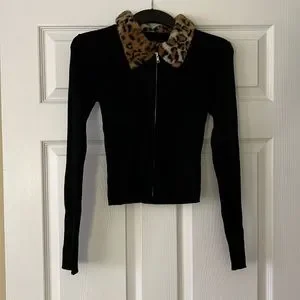 NWOT Forever 21 Faux Leopard Fur Zip-Up Sweater Size S