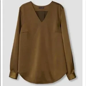 UNIVERSAL STANDARD EVA SATIN V-NECK BLOUSE CARAMEL SZ 2XS ( 6-8 )