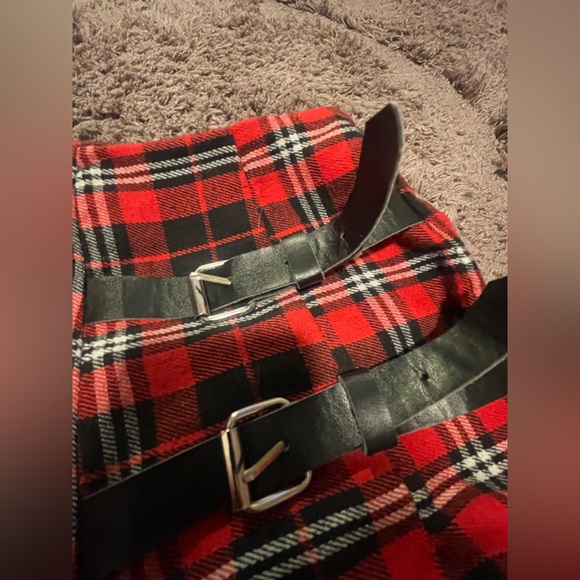 SHEIN Curve Red/Black/White Plaid Skater Skirt with Belt Buckles 3XL
