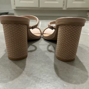 Rounded block heel with a snakeskin like texture to it