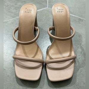 A new day - tan rounded block heel, with a square toe