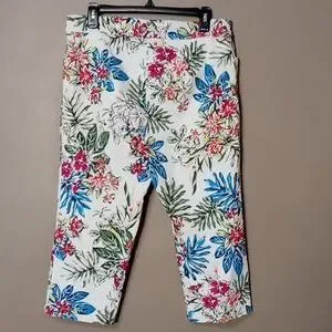 Time & Tru Bright Flowered Capri Pants LG (12-14). These have front pockets and no back pockets and excellent condition with no holes or stains.