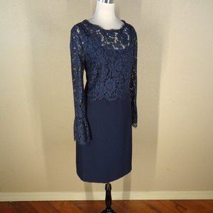 RSVP BY TALBOTS CREPE AND LACE COCKTAIL DRESS SZ 14 NAVY BLUE