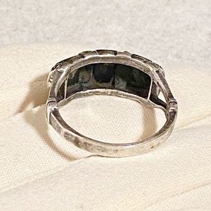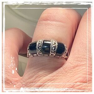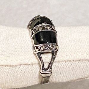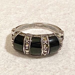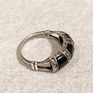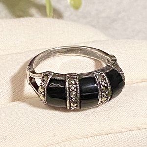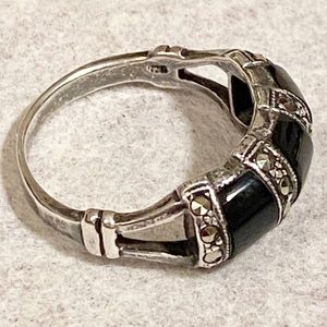 Vintage Sterling Silver Triple Marcasite and Black Onyx Ring