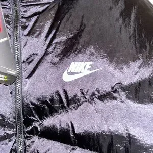 Borrowed from the Windrunner, the chevron shape that runs from shoulder to shoulder lends a signature Nike look. The grosgrain back neck loop makes it easy to carry and hang up this lightweight down jacket.