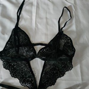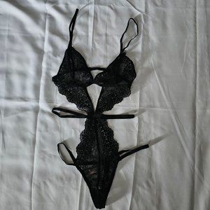 Victoria's Secret Chantilly Lace Plunge Teddy Bodysuit Black Size M/M