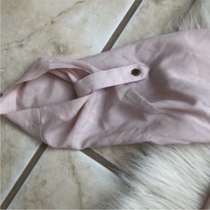 Light and airy sheer Jones New York blouse in a soft dusty ballet pink with lace up accent and gold button details | ¾ sleeves | NWOT, never used