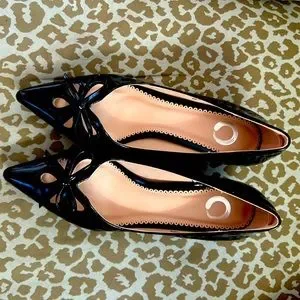 Mid-century inspired pointed-toe kitten heel pumps in Black