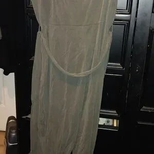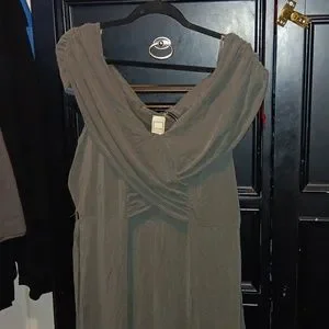 Dark green plus size jumps. Fabric crosses in the front, strap tie around the waist.