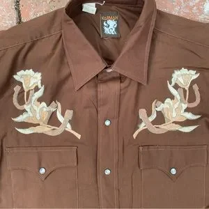 Vintage Karman western embroidered Flower Horseshoe Pearl Snap shirt