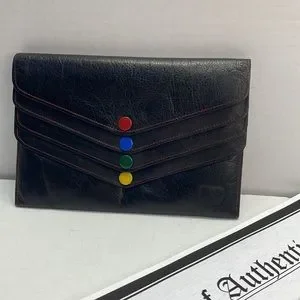 Authentic vintage CHRISTIAN DIOR multi snap black leather wallet with COA