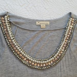 Twentyone gray/gray beaded tie back t-shirt top