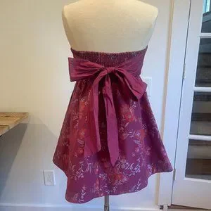 Features: Sweetheart neckline, strapless design, exaggerated back tie, empire waistline, smocking at back