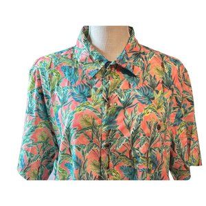 Caribbean Hawaiian Men Tropical Shirt Coral Parrot Palm Trees Button Casual NEW