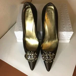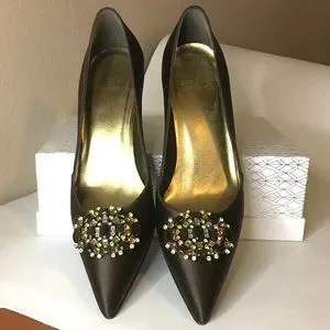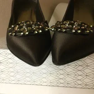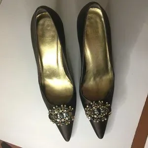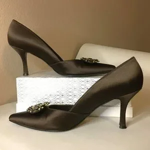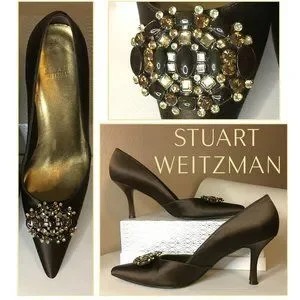 STUART WEITZMAN ✨ Brown Satin Rhinestone Embellished Heels in LIKE NEW Condition!