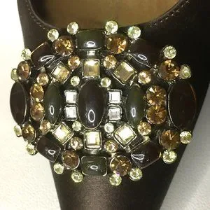 Heels, toes, inner and outer sole all look EXQUISITE. Designed to shine with every step, this beautifully elegant pump in the unexpected chocolate brown color with 2" x 2.5" oval multi-color rhinestone ornament across the pointed toes is an elevated take on the classic pump.