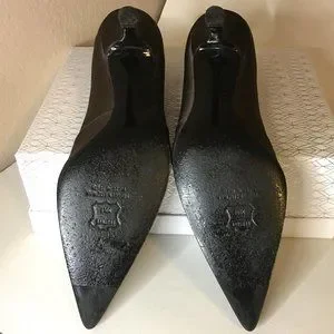 3.25" covered stiletto heel is constructed for a perfect amount of lift without sacrificing comfort. Leather sole. Made in Spain